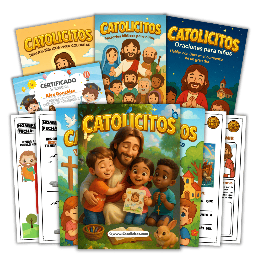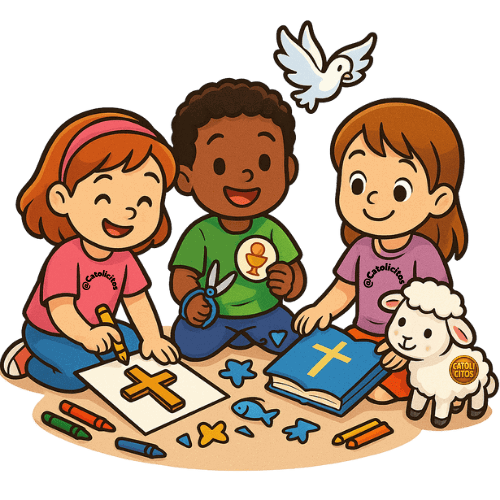 Actividades divertidas que enseñan la fe católica con juegos, dibujos y ejercicios.